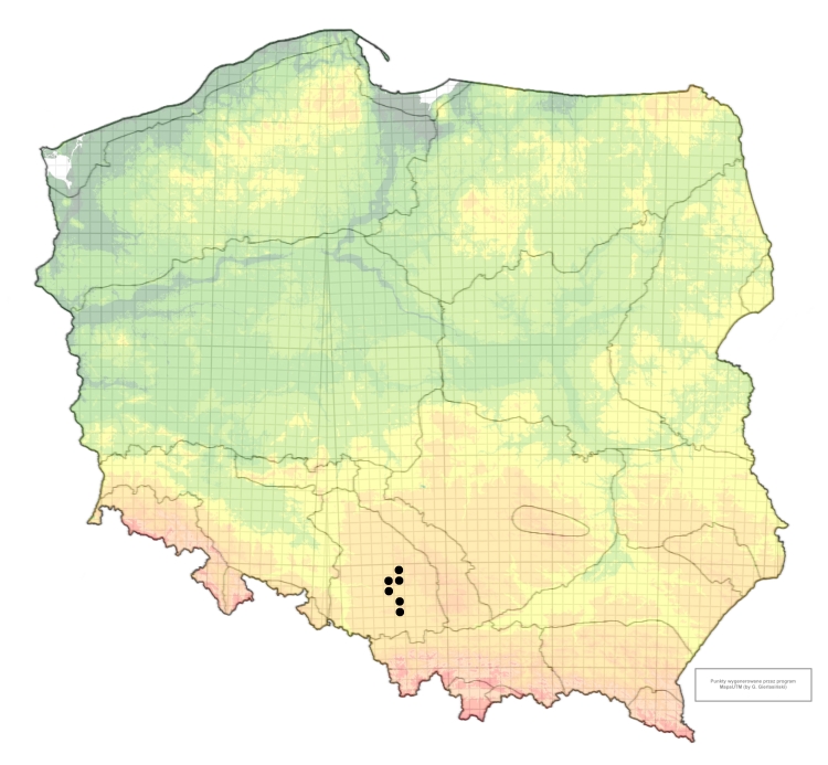 Bytom, I (CA58, Lis J.A. 1987c), Bytom, II (CA47, Lis B. et Lis J.A. 1994), Bytom, Las Segiecki (CA48, Lis J.A. 1993c), Katowice, I (CA56, Lis J.A. 1991b), ¦wierklaniec (CA59, Cmoluchowa 1977), Tychy (CA55, Gierlasiński et al. 2020a)