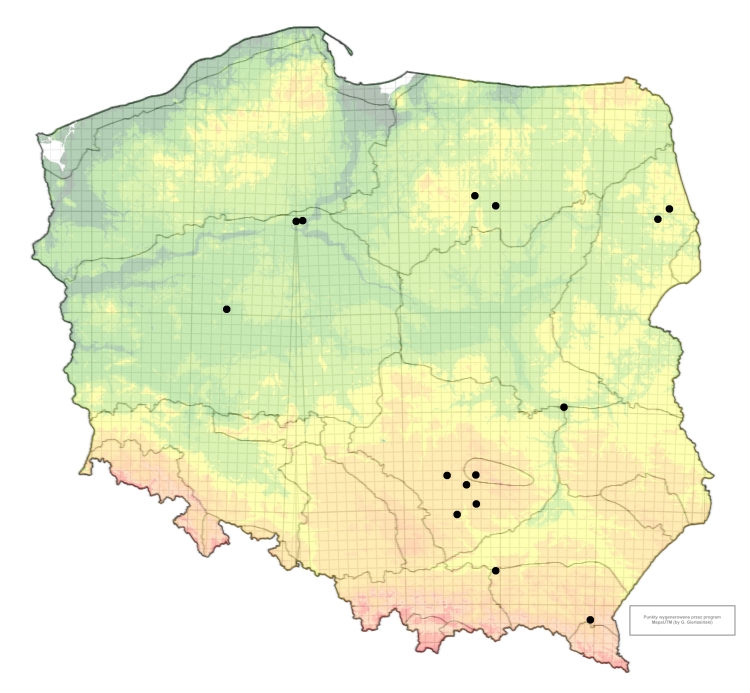 Byczowska Góra (DA59, Gierlasiński et al. 2022a), Gnieździska (DB43, Gierlasiński et al. 2022a), rez. Góra Rzepka (DB62, Gierlasiński et al. 2023), Stawiany (DB70, Taszakowski et al. 2016)
