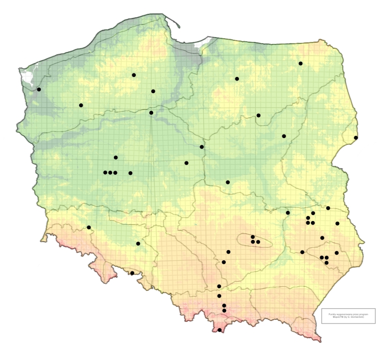 Bory Tucholskie (XV66, Cmoluchowa et Lechowski 1993), Goleniów (VV83, Wagner 1941a, Strawiński 1966b), Kalisz Pomorski (WV60, Herczek et Nakonieczny 1987), rez. Wierzchlas (CE03, Kosicki 1958)