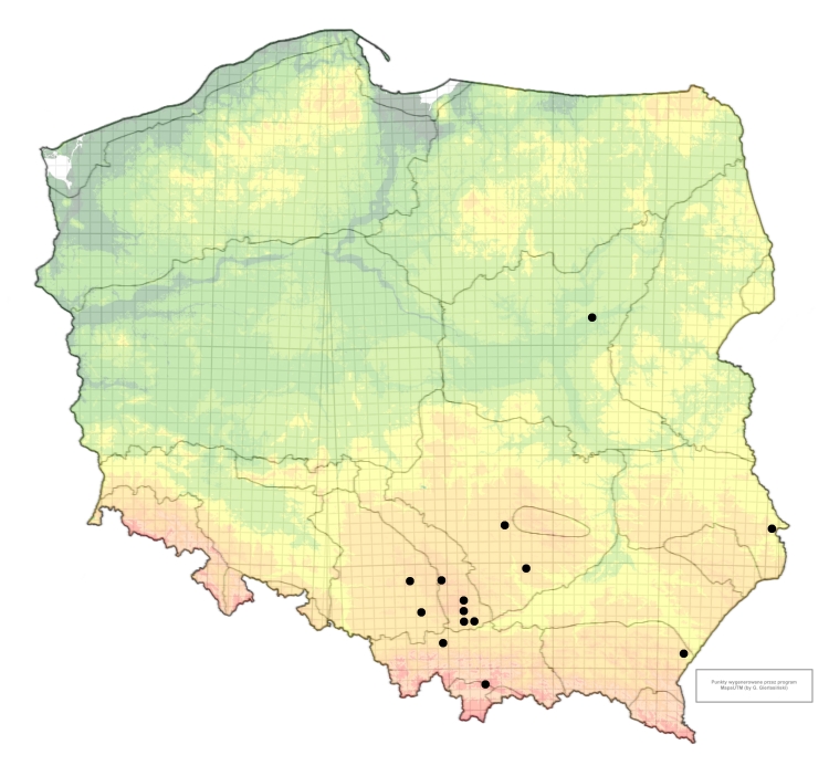 Chełmek (CA75, Smreczyński 1954), Imielin, Golcówka (CA75, Taszakowski et Kaszyca-Taszakowska 2019), Imielin (CA75, Gierlasiński et al. 2021a), Strzyżowice (CA68, Gierlasiński et al. 2021a)