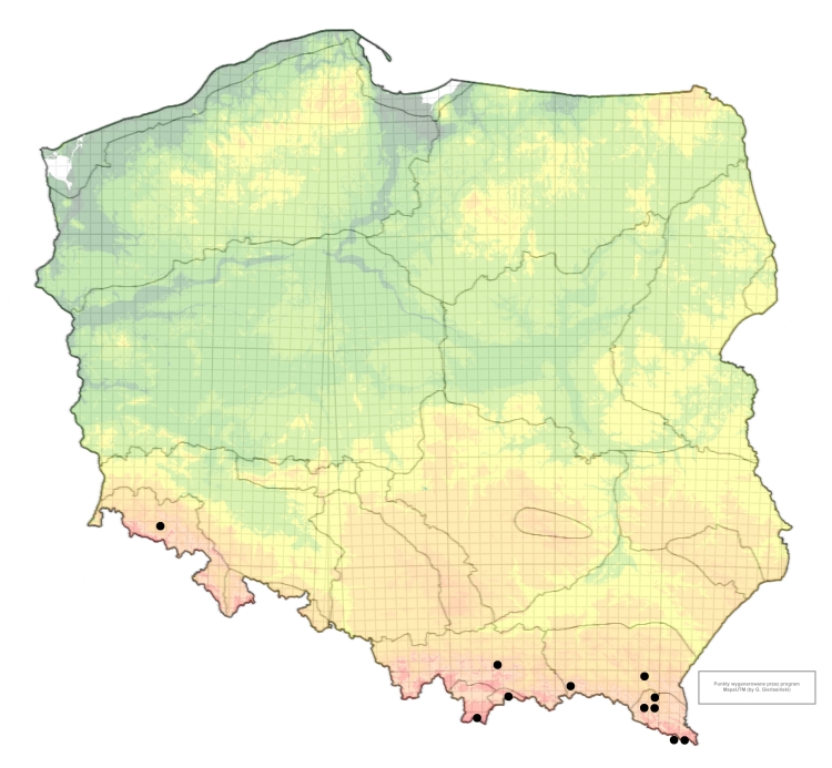 Biała Góra k. Sanoka (EV89, Cmoluchowa et Lechowski 1977), Gładyszów (EV18, Taszakowski et Gorczyca 2018)