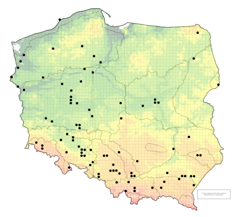 Kraków, Bronowice (DA14, Gierlasiński et al. 2020a), Kraków, Pr±dnik Czerwony (DA24, Smreczyński 1954), Kraków, Zabłocie (DA24, Smreczyński 1906b), Kraków (DA24, Smreczyński 1954), Ojcowski PN, Murownia (DA15, Chłond et Gorczyca 2009), Olsztyn, Skałki Duże (CB72, Gierlasiński et al. 2019e)